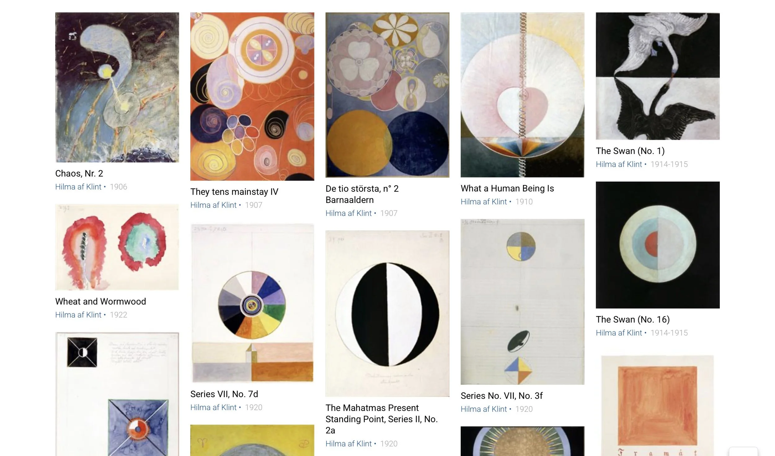 They began to work with color, shapes, and lines. This new style later became known as abstract art. One artist from this time is Hilma af Klint.